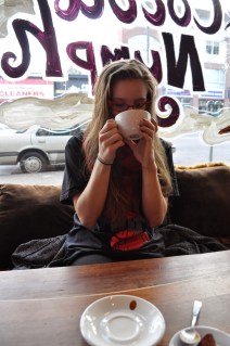 The featured item today was Aphrodite’s Delight, a vegan almond milk hot chocolate accented by a mango-rosemary blend and paired with vegan chocolate fudge (wow)! I had already started falling for the place itself, so I eagerly ordered the day’s treat.