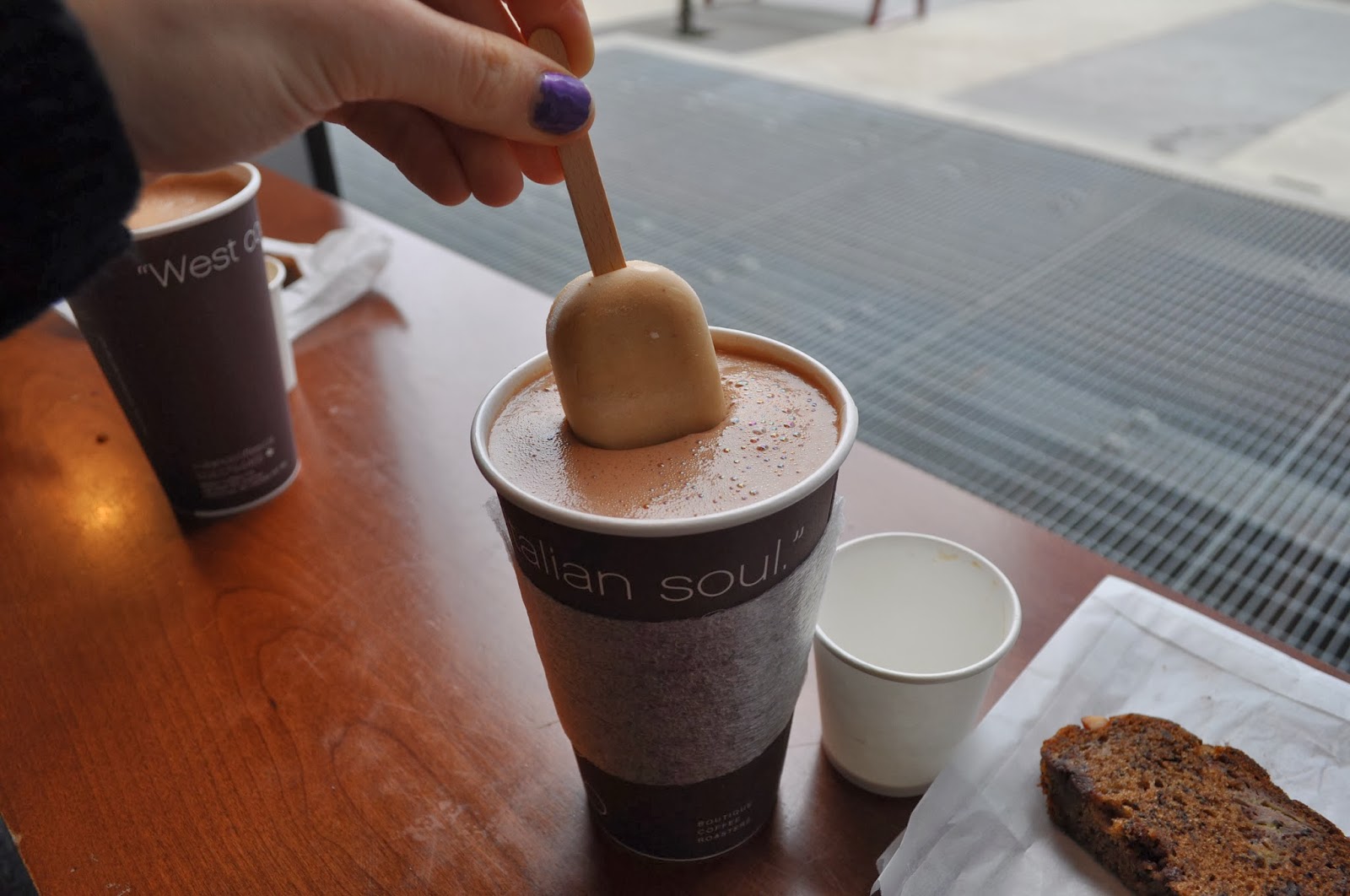 The gBAR reminded me of a Fudgsicle in its texture – perfectly frozen and creamy and biteable without hurting the teeth! It was smooth with caramelly flavour, and it melted easily into the hot chocolate as I began to stir.
