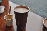 As for the almond milk hot chocolate on its own, it was not particularly smooth. This was not bad, though, as it was “rough” with almond, nutty flavour and dark chocolate. After I mixed in the gBAR, it seemed there was too much hot chocolate for the flavour to be strongly mixed – and part of my bar fell into the bottom! I figured this may serve me well later, but in the mean time I could not continue stirring it with my tiny gBAR stick. There was a subtle caramel flavour at this point, however.