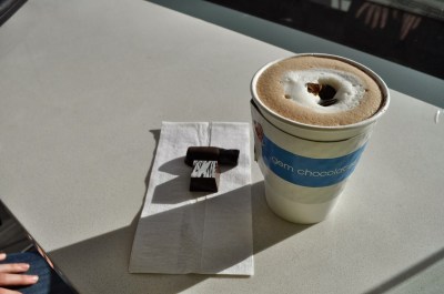 The beverage was consumed with slight haste, as the sun was shining directly into the store window and was melting our chocolate and making it feel quite like summer time. Once complete, we turned our attention to Glenn, and I asked how he creates a black licorice-flavoured hot chocolate; his response was lengthy and sounded very impressive. Though I do not recall the process, I do know that he expressed his wishes for me to have tried it with almond milk, because it would have been a lighter milk and may have showcased the flavour a bit more. Kindly, again, he shared the raw ganache with us – prior to being added to a drink – and I think it would have been very good with almond milk!