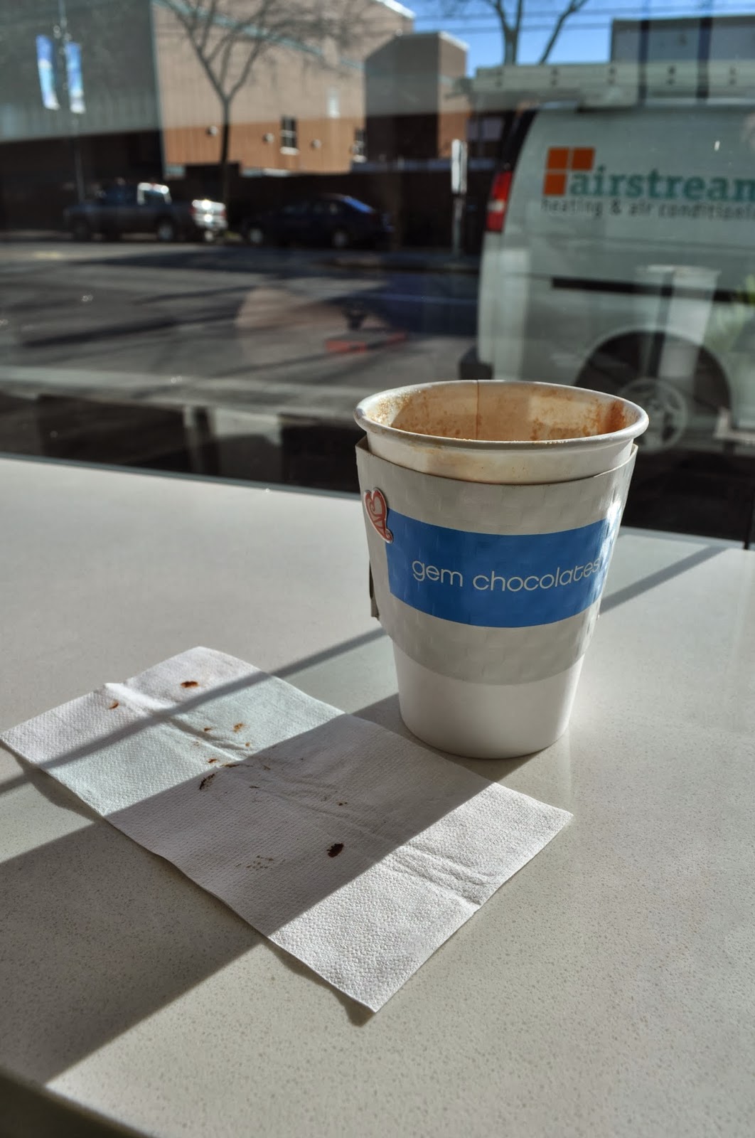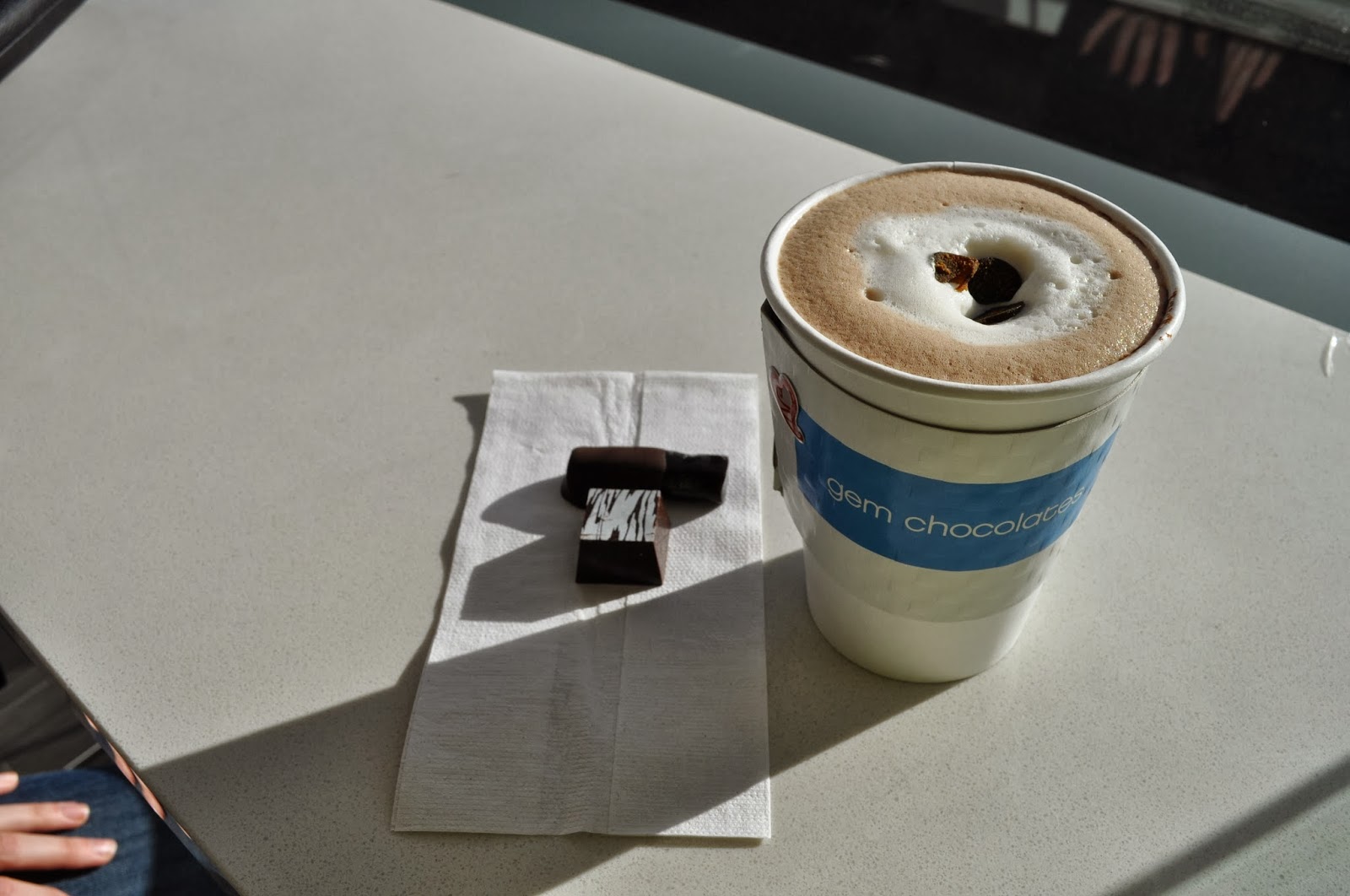 With good company at my side, today’s hot chocolate festival visit took me to a spot I visited during last year’s festival: Gem Chocolates. To the unprimed eye, one may mistake the location for a small Bell outlet, based on its simplistic white and blue exterior – but when you walk inside, you are greeted with not the latest cell phones, but the delicious aroma of chocolates crafted by the store’s visionary, Glenn.