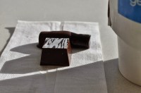 Alongside the drink, I was expecting the item listed online: chocolate-dipped natural black licorice. Out of kindness I’d like to think, Glenn acknowledged that A and I shared one beverage, and he gave us two types of treats: One, the chocolate-dipped licorice, and the other his “Zebra” creation. The Zebra (he pronounces it “zeh-bra” not “zee-bra”) is a “natural Australian black licorice infusion in dark ganache”… and it is delicious.