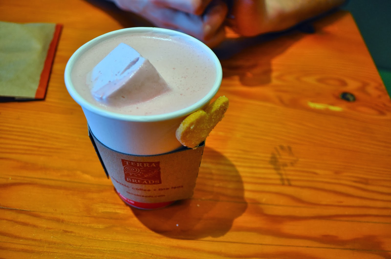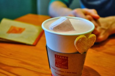 As I was very tight on time, I went to snag a hot chocolate I had been dodging because of its white chocolate content (despite how sweet I once knew that flavour to be); however, today I returned to Terra Breads for their “Aloha Sweetie” festival item.