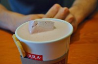 | Barry Callebaut White Hot Chocolate with hibiscus flower. Served with mountain berry marshmallow and lemon sugar cookie. |