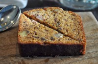 The drink was not the only item presented in the lovely display of the festival combo, however! Beside the hot chocolate (in what I thought was a beautifully simple and elegant glass), was a slice of banana bread. The bread was nutty and moist and full of texture from all of the extras that were baked into it. I made good use of the spoon that was supplied by dropping chunks of bread into the drink, only to scoop them up covered in sweet chocolate, caramel, and vanilla flavours; each of which took its turn in making its presence strong throughout my drinking experience (caramel, almond, vanilla, rotate).