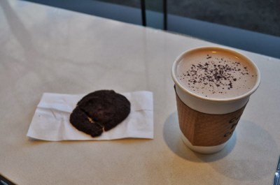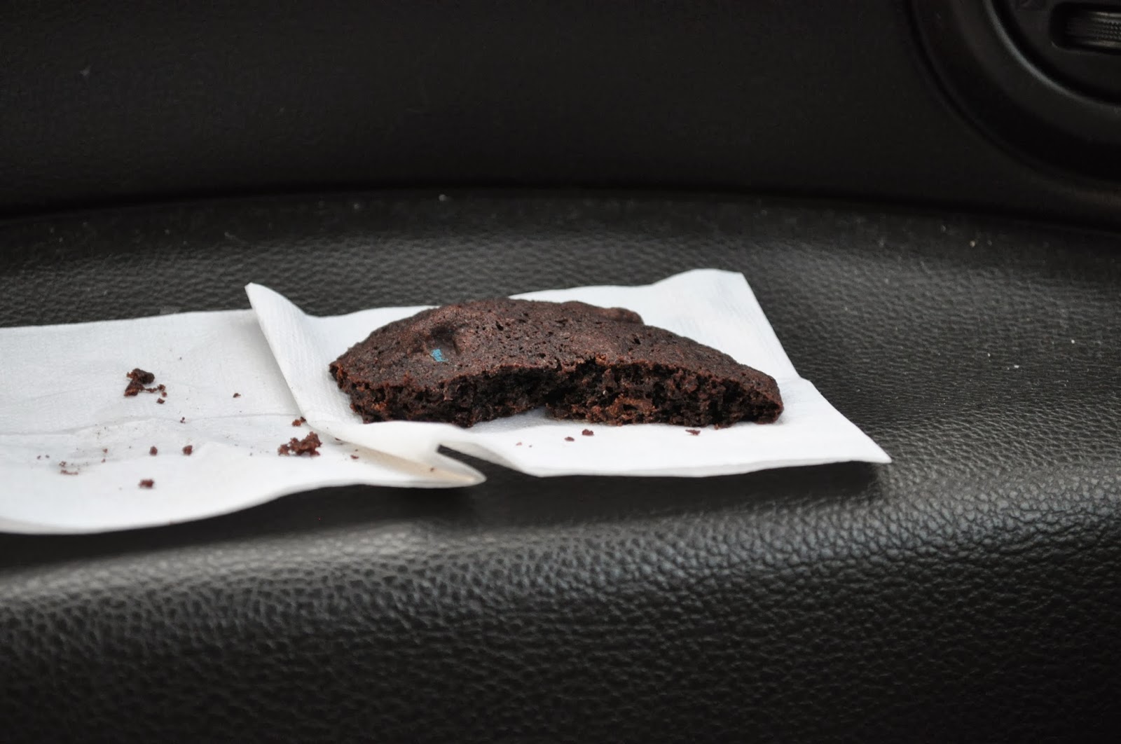 Towards the bottom of the hot chocolate, I could begin to taste some of the cherry flavour, though I do believe I truly got what little was left of the ganache, ha ha. In addition to all of this last-day-of-the-festival craziness, I missed out on the cherry chocolate creation! However, I was not disappointed by the consolation prize: A homemade chocolate fudge cookie made by a Gem Chocolates employee. It was a moist and gooey and amazingly delicious cookie to be paired with the yummy hot chocolate!