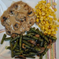 Vegetarian “chicken” fillet with mushroom gravy and yummyness. |