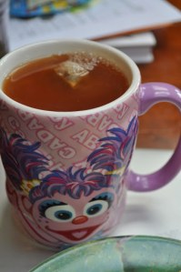 | This is Abby Cadabby, she has been my amiga through most mornings and evenings at home! She carries my tea. |