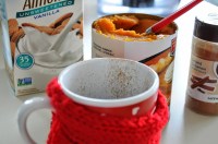 Today marks the first day of the challenge, and as it is the first week of midterms for me, I decided to indulge in a slightly-caffeinated and warm treat for a cold, windy day: A chai-pumpkin-almond-milk latte with cinnamon. Simple, sweet, and cozy on a day where my mental strength is both at its most determined and most fragile – two days before two midterms, and this seemed like a simple way to warm up my body while also cooling down an overheated brain.