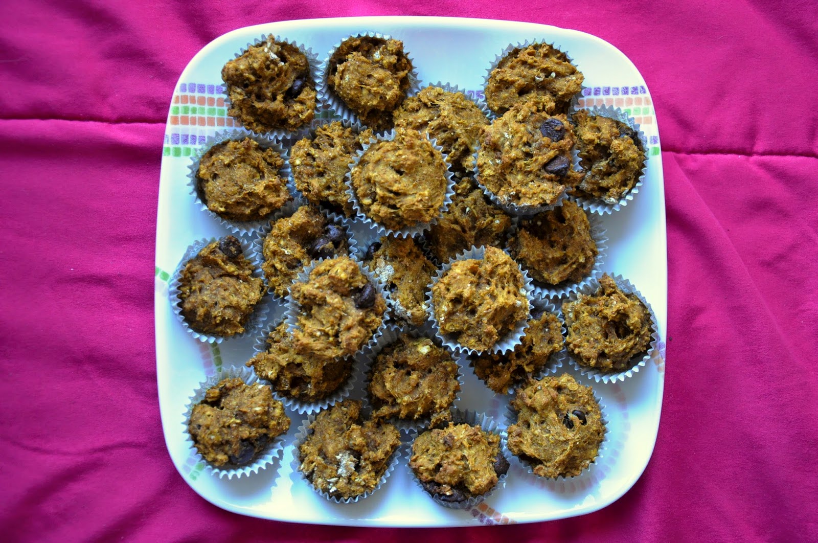 In a Pumpkin Challenge plot twist, I did not use a CCK recipe today! I altered a “Skinny Pumpkin Muffin” recipe to make it vegan. I made a batch of mini muffins and used leftover batter to make two small pumpkin “loaves” (though they were not very bread-like in their density – much more like banana bread!).