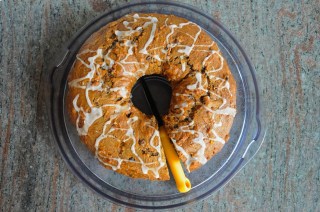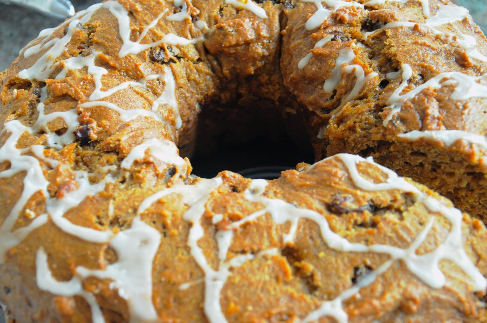 The experience of eating this cake can best be described, I believe, as what eating a fluffy pumpkin pie would be like. A fluffy pumpkin pie sprinkled with raisins and accents of citrus, as it was lightly flavoured with orange zest. An aroma of cinnamon and citrus notes emanated from the dish every time the lid was lifted off of it.