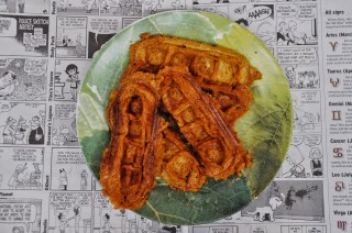 To celebrate my parents returning from their trip, I decided that some snack-sized waffles for brunch would be appropriate. I found this recipe from My Darling Vegan, and would happily go back! I think I put too much in the waffle-stick maker, because these didn’t fluff up as much as I had hoped, but they tasted delicious, and that’s really all that matters.