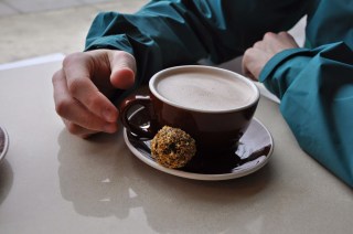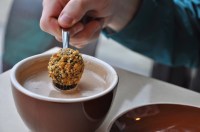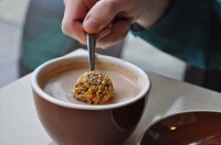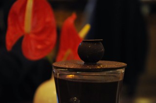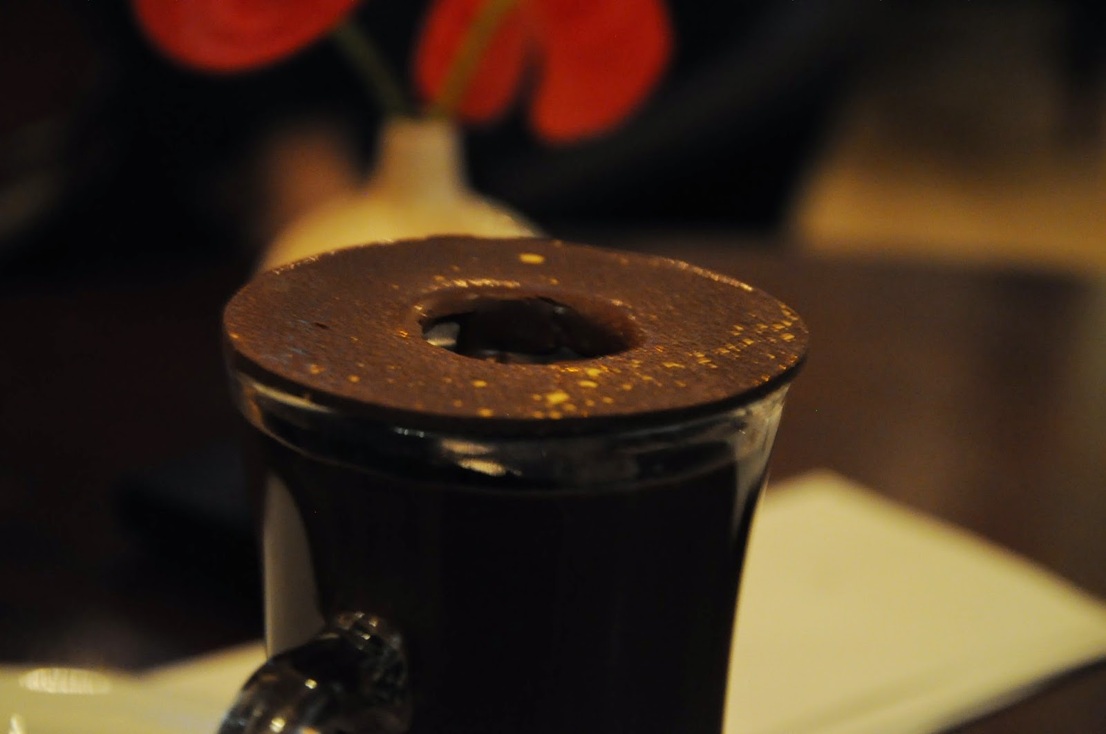 Adults Only was an incredibly smooth hot chocolate served with a matcha green tea cake (cute-sized), with a chocolate disc placed atop the beverage – in the middle of this disc was a chocolate sphere containing Bailey’s (hence, adults only). As the steam from the hot chocolate rose and warmed the disc…