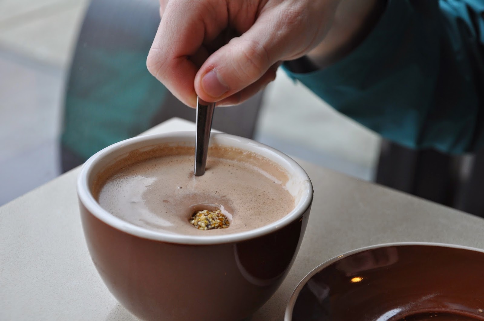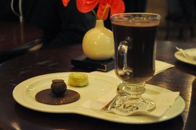 AE enjoyed a milkier Christella Decadence with a sphere of Chez Christophe’s hazelnut cream – imagine a Ferrero Rocher going into your hot chocolate, if you will…