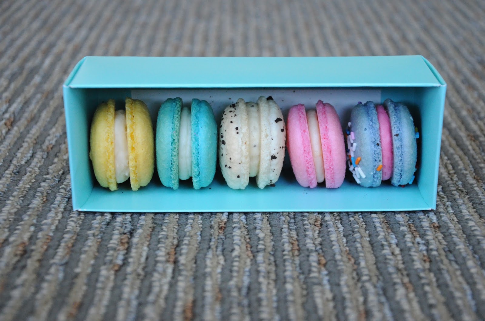 | Look at that face! He loved the macarons, too. |