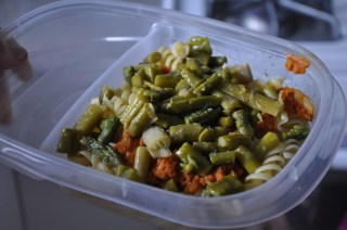 Day 5 was a day of rushing around and realizing: Oh no! I don’t have a pumpkin thing yet! From that, you get: Pumpkin puree turned pasta sauce. I quickly heated the puree in a pan and mixed it with a few spices, including curry powder, and threw it on some pasta with asparagus before heading to work – admittedly not my greatest creation, but it did taste good despite its hasted creation!