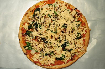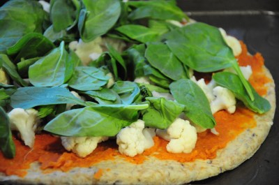 This pumpkin pizza was made for our house-warming pizza party last week! It was inspired by this recipe from Taste.com, but shares few similarities, as I was using pumpkin puree. According to those that ate it, it was a success! I replaced pizza sauce with pumpkin puree and topped it with cauliflower, spinach, caramelized onions, and rosemary. I believe that the original recipe would definitely be worth going back to and making according to the instructions!