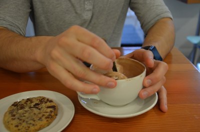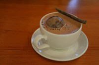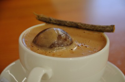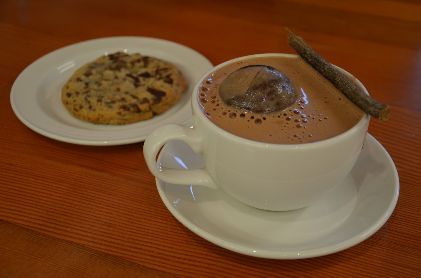 The almond milk made the weight of the drink lighter in the mouth and allowed the chocolate and Tonka bean flavours to be showcased a bit more than I think it would have with a heavier milk (soy or otherwise). I think both experiences would be great, but I am pleased with mine in the end.Our chocolate sphere, containing the accompanying marshmallow, was slowly melting; however, not with the haste that we would have liked. Thusly, we took our rugged stir stick and helped it along.