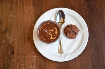 Unfortunately, my order came with the only other vegan ice cream option – dark chocolate peppermint. While this would ordinarily be delicious, I’m sure, my first taste of the treat was so intensely dark chocolate that I found it a bit overwhelming. The molten chocolate had a bit of a spicy kick to it that could be balanced with cool ice cream; my comrades said that prior to the ice cream melting, the combination was delicious. However, the amount of molten chocolate proved to be a bit much, as it consumed the ice cream and became too rich for our liking.