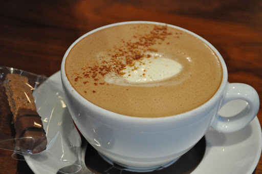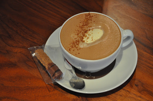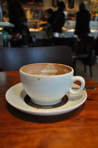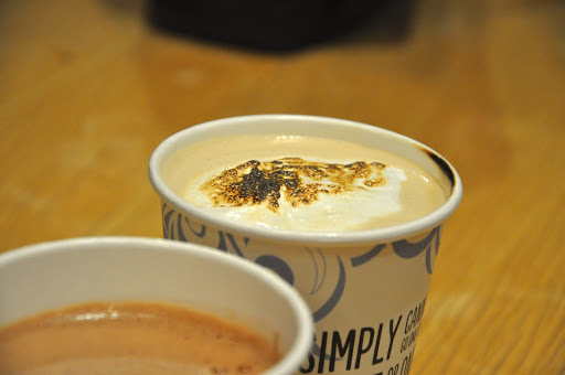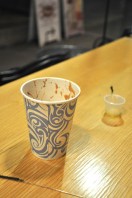 This year, after conferring with the staff for a few minutes, I decided upon a soy milk “Mumbai Meets Paris” – soy, because we thought that absorbing the chai spices would be better than letting them roam free in an almond-milk drink (as almond milk tends to let wild flavours do).My first sip was immediately reminiscent of those chocolate oranges (Terry’s?) that you smash on the table to split into little chocolaty orange slices around Christmas time. As a fan of both chocolate, orange, and their combined flavour, I was a fan of this drink right away.