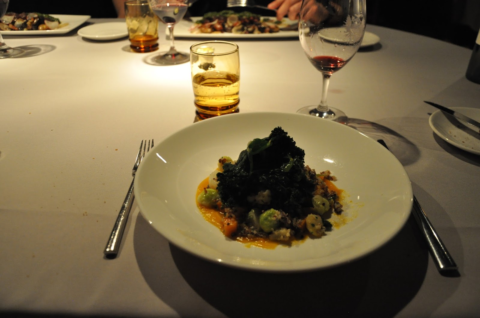 Upon arriving in Quebéc, we quickly established our place of rest for the night before heading out to dinner. When it was confessed that we had a vegetarian at the table (me), the waiter, knowing there were no meatless menu options, exclaimed, “Madame, I have a plan!” and dashed into a back room. Apparently, this is where they hide the vegetarian menus, and I enjoyed a superb meal with a wine that I found slightly better than tolerable (I’m not a wine person yet; the wine was very nice, I’m sure).