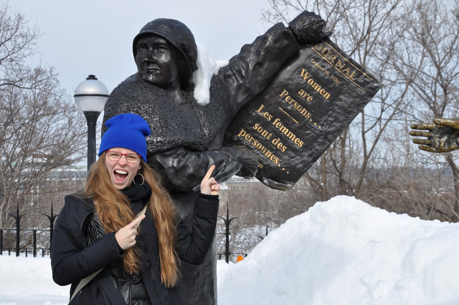 Ottawa in the daylight was beautifully sunny and snowy (but watch out for melting snow on the roofs of buildings)! I tried my first Beavertail and hiked through freshly-fallen (and densely packed) snowy fields to the Parliament buildings, the Supreme Court of Canada, and eventually an Uber driver (my frist time), who took us to the bus station. From there, we made our way to Montréal.