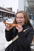 The snow continued to fall and the wind blew with gusto (ha) as we sought out a place to eat on a budget after realizing we had not eaten any real food (save for two shared granola bars) for the last 9 hours or so. We found ourselves at a familiar-but-unexplored restaurant called WAREHOUSE, which also has a location in Vancouver and other major cities I have visited. The entire menu has a baseline price of $4.95, which adds up depending on what you want to add to your dish. The food was great, especially considering the affordability!
