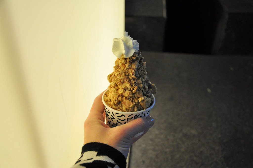 This seasonal spicy flavour included pumpkin soft-serve and graham-cracker covering with a dollop of whipped cream. It truly tasted like a pumpkin pie! This was the baby size, but it was incredibly filling (and definitely not dairy-free, unfortunately).